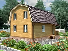 Дом производится из силового каркаса, состоящего из каркасной деревянной основы, утеплителя с толщиной в 10 см, а также вагонки. Окна деревянный, имитируют стеклопакет, обналичка – строганная доска. Лестница может быть одно- или двухмаршевой.