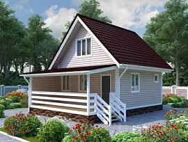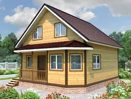 Дом, построенный по проекту «Бриг», идеален для загородного отдыха. За счет небольших размеров (4х6 м) его можно разместить даже на очень маленьком участке. Тем не менее, благодаря продуманной планировке в коттедже создана уютная и комфортная атмосфера.При входе в дом обустроено небольшое крыльцо, которое защищено навесом от дождя и снега. На первом этаже располагаются холл (6 м2), кухня (6 м2) и просторная гостиная (12 м2). Свободного пространства вполне хватает для комфортной жизни. В кухне и гостиной предусмотрено по два двухстворчатых окна. Благодаря дополнительному естественному освещению эти комнаты остаются светлыми вплоть до самого вечера.
