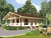 Коттедж Молочный – это просторный одноэтажный особняк, построенный из бревна оцилиндрованного типа (соснового бруса кругляка). Двускатная кровля имеет небольшой угол наклона, что подчеркивает площадь строения в 81,3 м2. Несмотря на относительно небольшие размеры 8,5x10,5 м, коттедж смотрится очень добротно. Можно построить дачный дом, который будет гармонично вписываясь в ландшафтный дизайн любого участка.