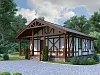 Полезная площадь коттеджа 80 кв.м., размеры в плане 8х10 м. Дом одноэтажный с большой террасой (2х8), которую можно использовать в качестве летней столовой. Традиционные для фахверка раскосы делают дом более колоритным.