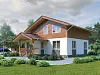 В составе входной группы терраса, на которую ведет широкая лестница с перилами, и тамбур (2,72 кв.м.) с котельной (5,13 кв.м.). Из тамбура можно попасть в холл (14,2 кв.м.), откуда двери ведут в совмещенную кухню-гостиную (3,9х9,4), санузел (2,1х1,8) и гостевую спальню (4,3х3,8). Из гостиной есть выход на террасу (2,5х5,4) с лестницей в сад, которую можно использовать как летнюю кухню.