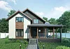 - Вход в дом пролегает через стильную террасу, дизайн которой соответствует модным тенденциям. Ее размеры (площадь 15,7 кв. м) позволяют оборудовать комфортную и уютную зону отдыха на открытом воздухе.