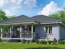 Проект «Усадьба 2» – это воплощение Вашей мечты о комфортабельном загородном отдыхе. Все условия для этого позволяет создать простая, но одновременно с этим удобная планировка дома. Еще одним преимуществом коттеджа являются компактные размеры (6х6 м), что дает возможность разместить его даже на маленьком участке.К дому пристроена небольшая терраса (9 м2), где можно разместить пару кресел и столик. Такая зона отдыха на свежем воздухе – отличное место для того, чтобы почитать любимую книгу или пообщаться с семьей за чашкой чая. Войдя в дом, Вы попадаете в кухню (10 м2). Продумав интерьер, здесь легко можно расположить и гарнитур, и обеденную группу. Дверь из кухни ведет в просторную гостиную (14 м2), откуда можно пройти в санузел. Недорогие бани 6х6 из бруса.