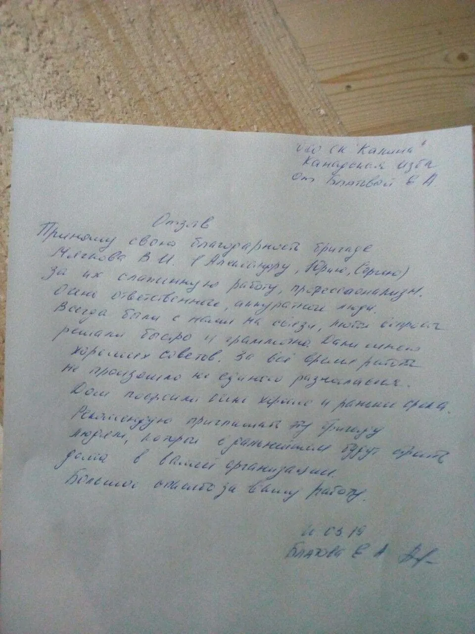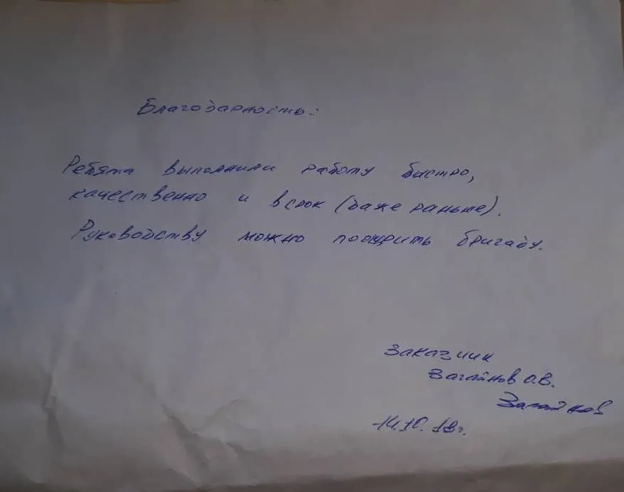 Приношу свою благодарность бригаде Мягкова В. И. (Александру, Юрию, Сергею)